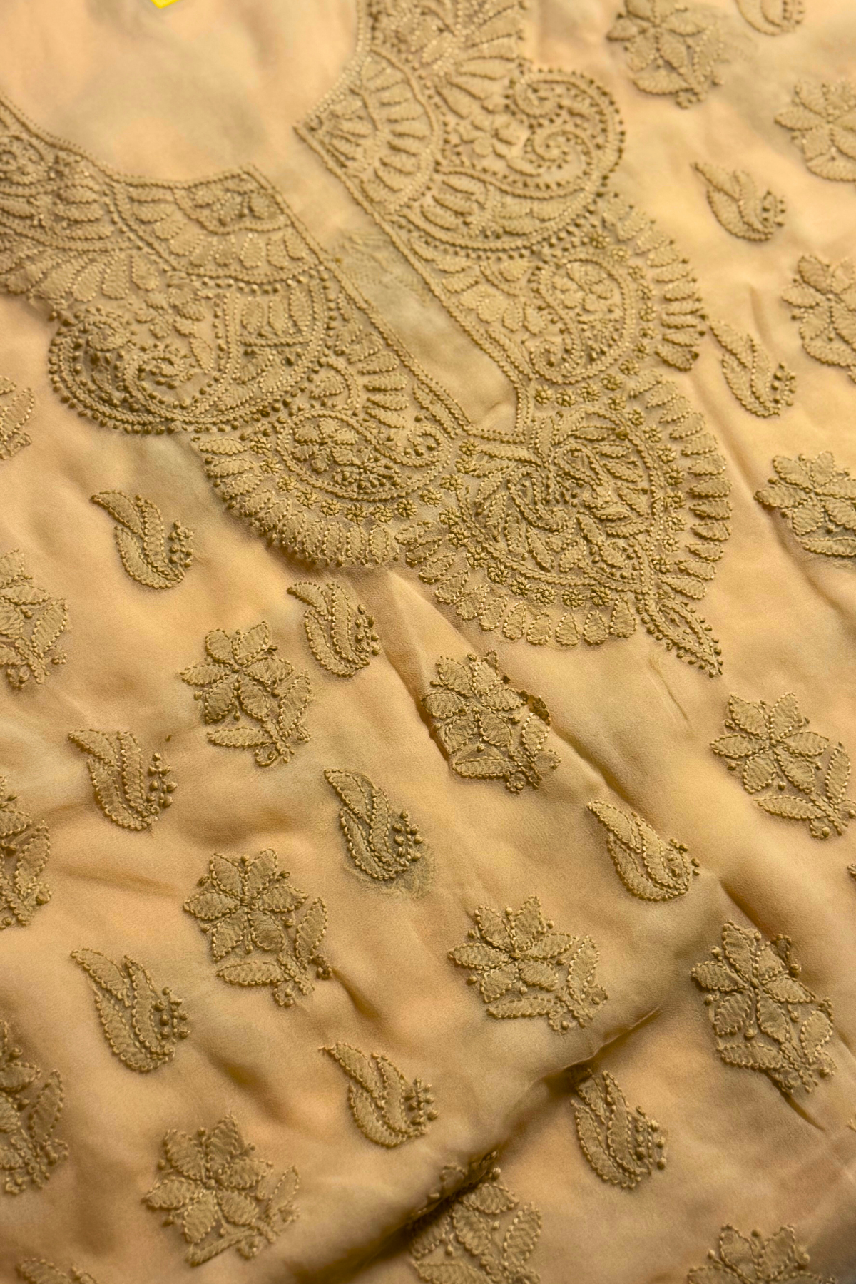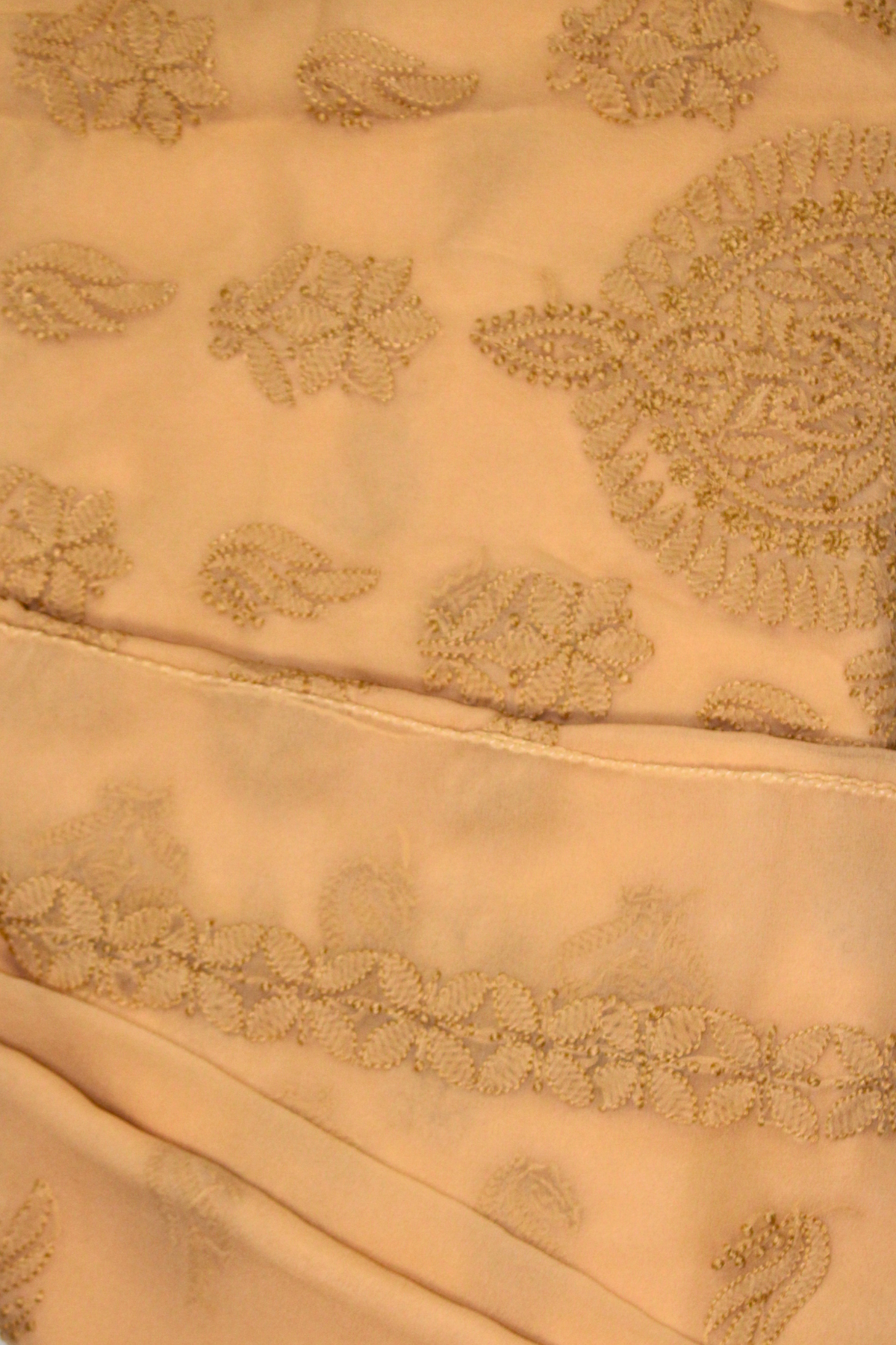 Work: Tone on Tone Chikankari Hand Embroidery with Intricate Floral and Paisley Motifs