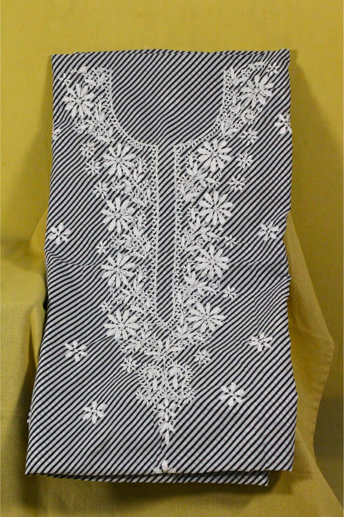 Chikankari Floral Embroidery on traditional Lehariya Pattern, with Chiffon Dupattta