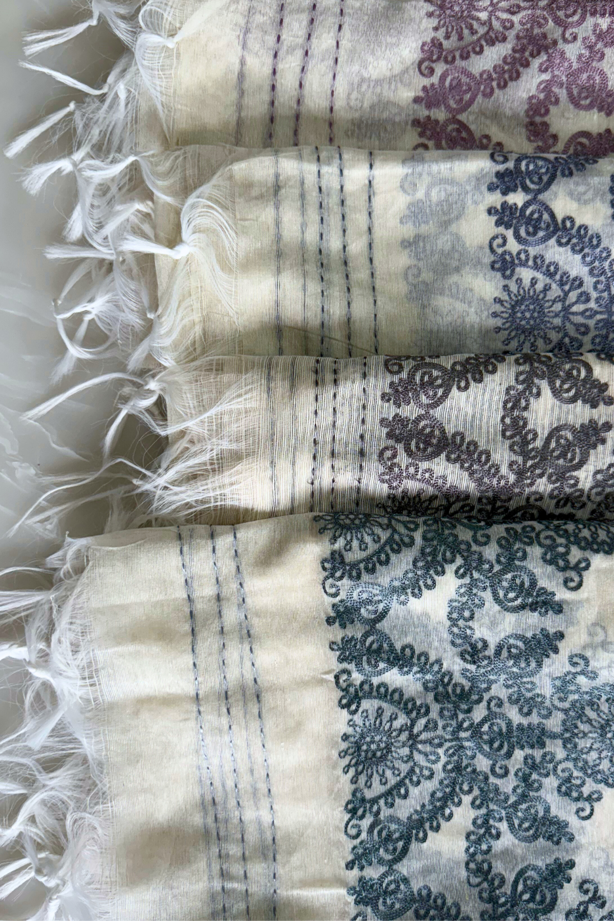 Designed for softness, elegance, and breathability, the Cotton Linen Pastel Suit Set is an effortless wardrobe essential. The kurta features traditional thread embroidery in a Chikankari-inspired motif, beautifully complemented by a white cotton dupatta with delicate knotted tassels. Its pastel color palette brings calm sophistication to daily ethnic wear.