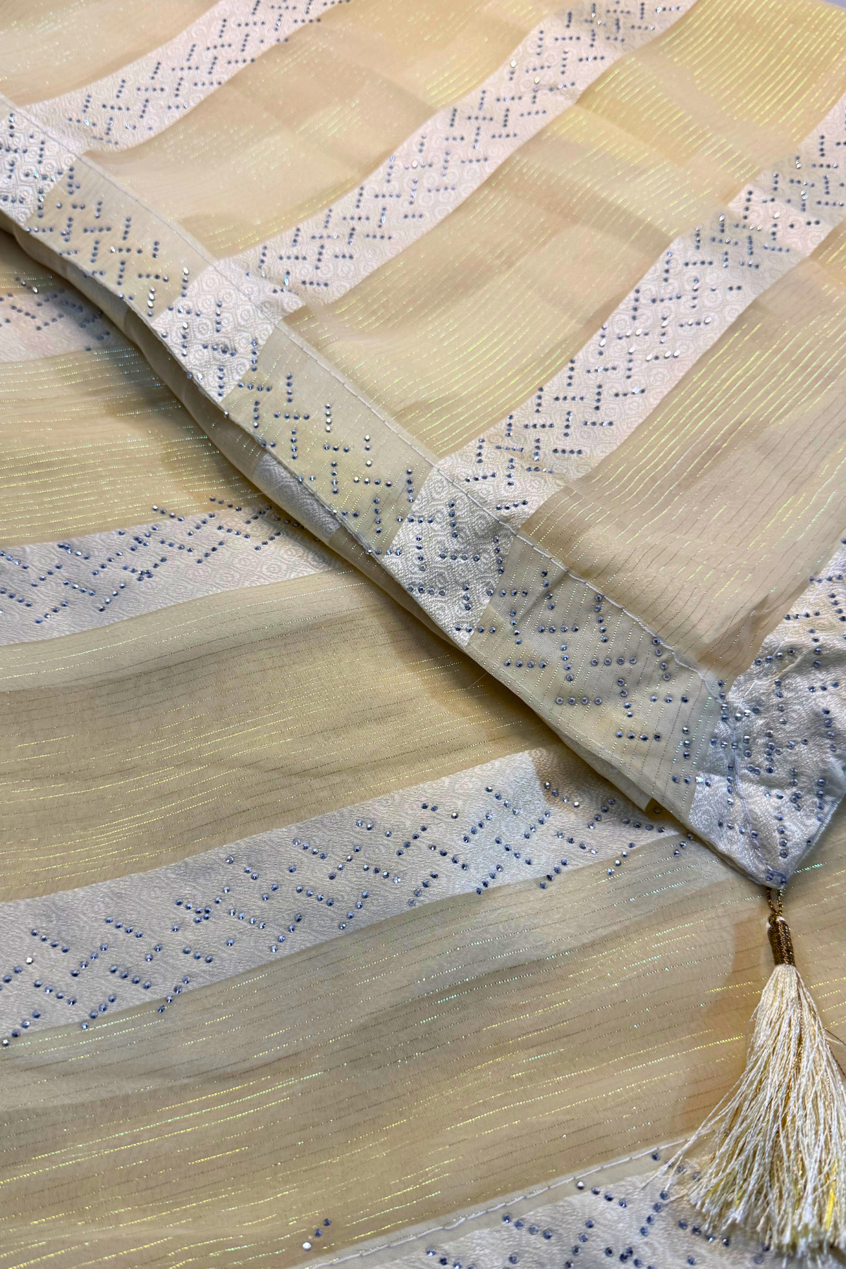 A Stunning Pale Yellow Georgette Saree featuring Delicate Rhinestone work that catches the light beautifully