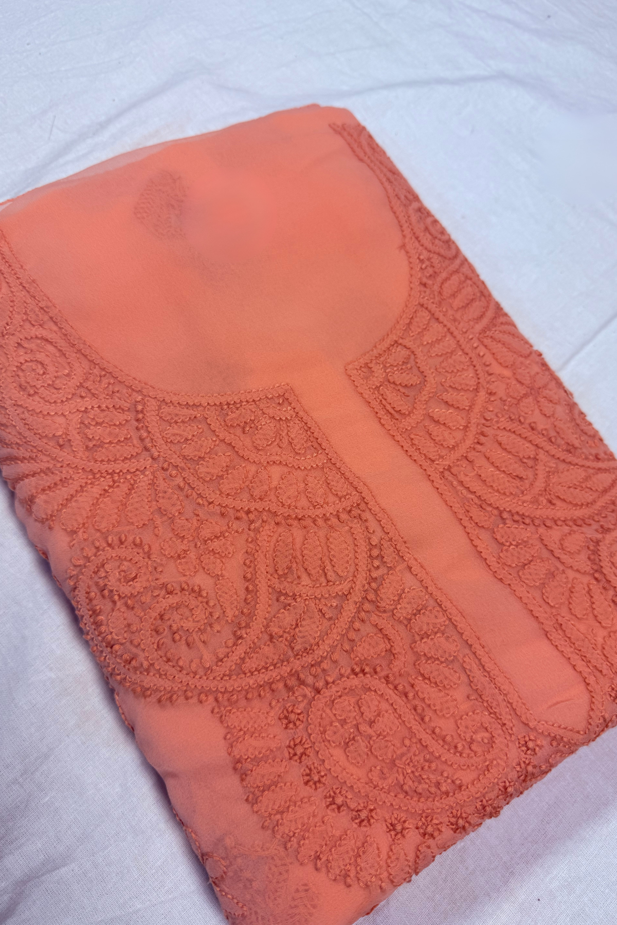 Work: Tone on Tone Chikankari Hand Embroidery with Intricate Floral and Paisley Motifs