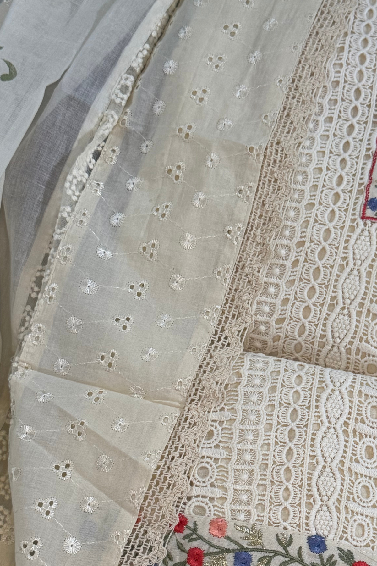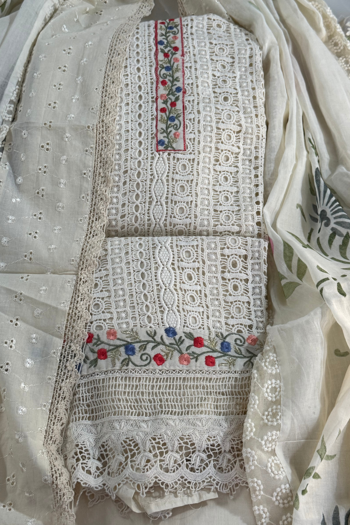 Featuring Intricate Crochet Lacework, Delicate Floral Embroidery in Vibrant Hues, and Printed Dupatta