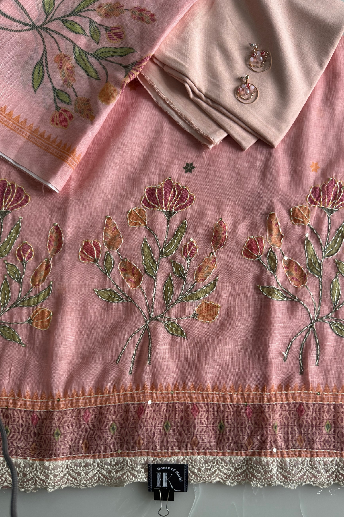 Work: Intricate Hand Embroidered Floral Motifs and Threadwork