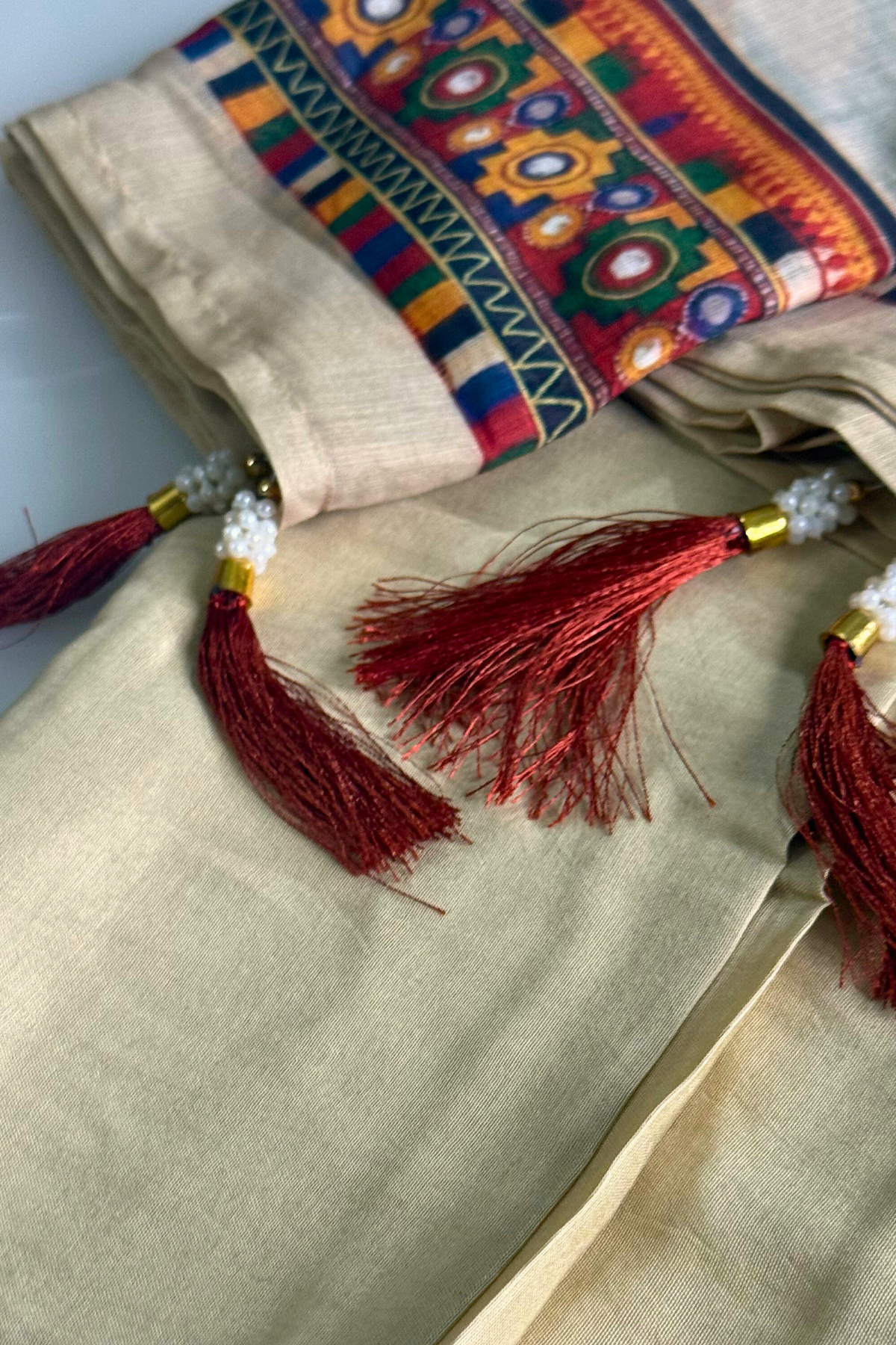 Bold, artistic, and rooted in tradition — the Multicolour Tribal Cotton Suit Set features a stunning array of tribal geometric prints in vibrant reds, blues, greens, and yellows. With playful mirror accents and circular motifs across the kurta, this breathable cotton ensemble is made for festive days and statement ethnic styling.