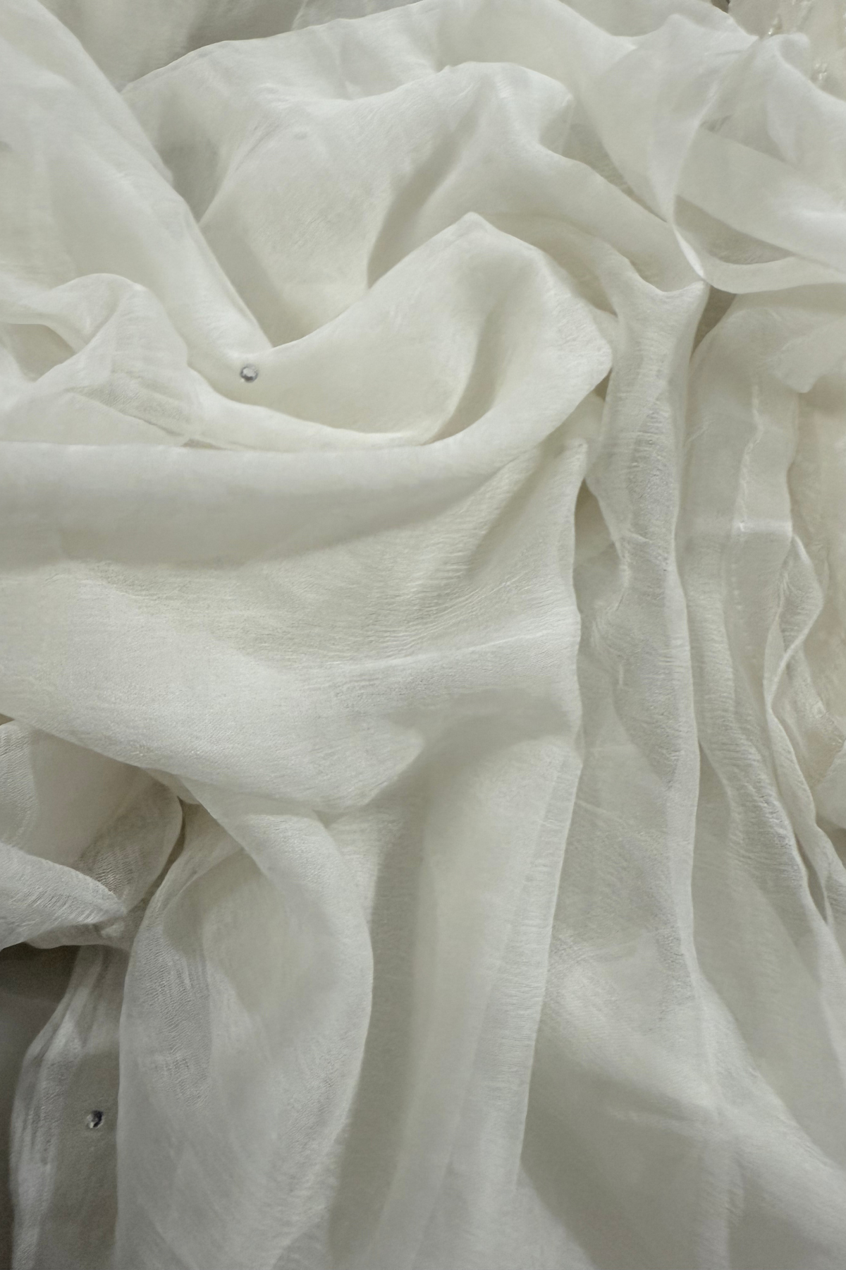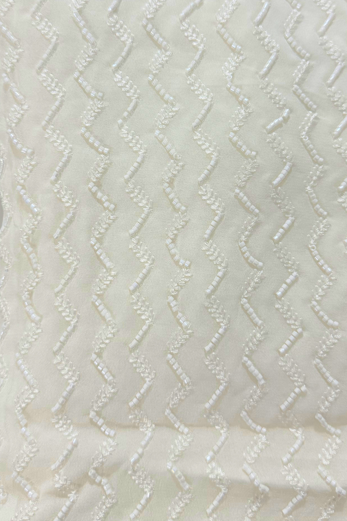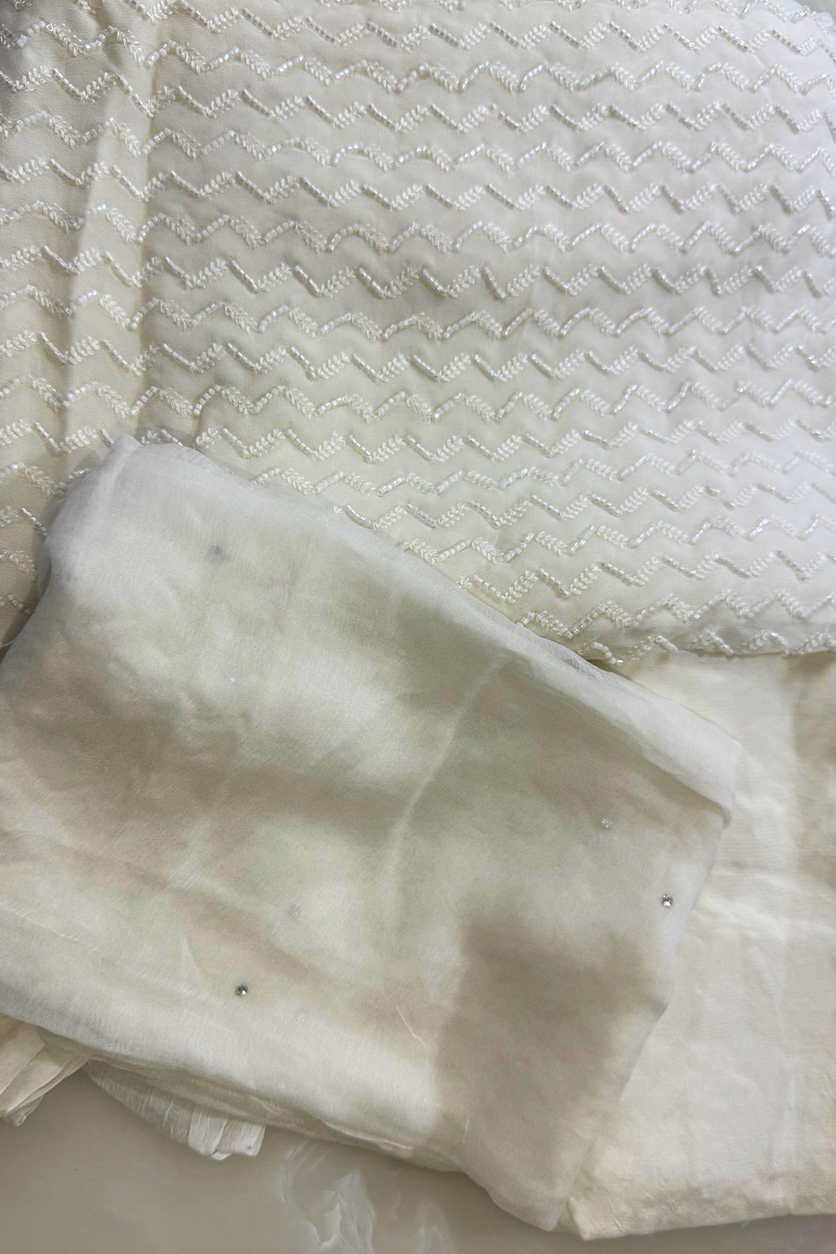 Pure White Georgette Kurta featuring Elegant Chevron Pattern Bead Work Embroidery, complete with dupatta and bottom
