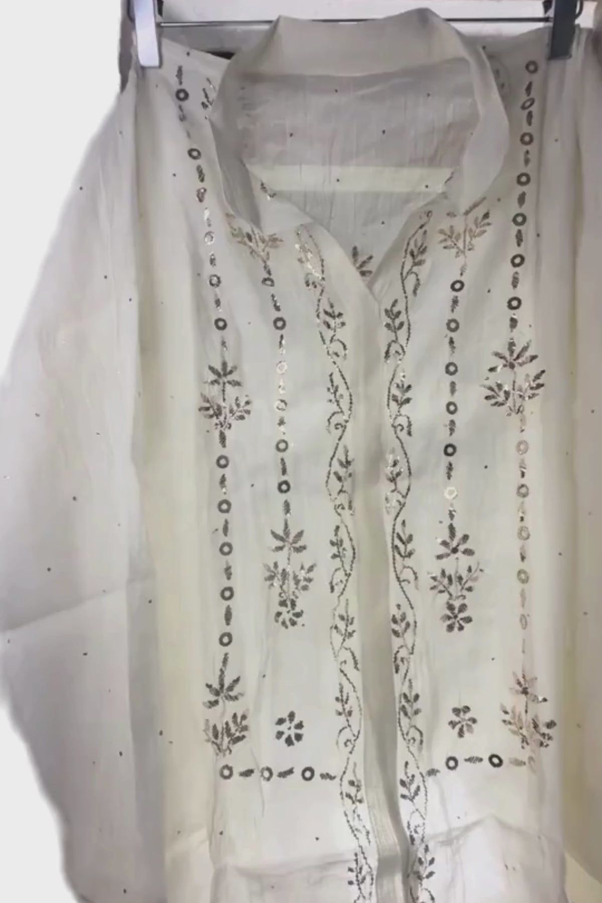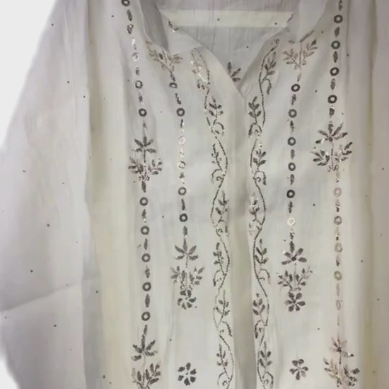 Ethereal White Muslin two-piece featuring delicate Mukesh Embroidery with Floral Vine Motifs